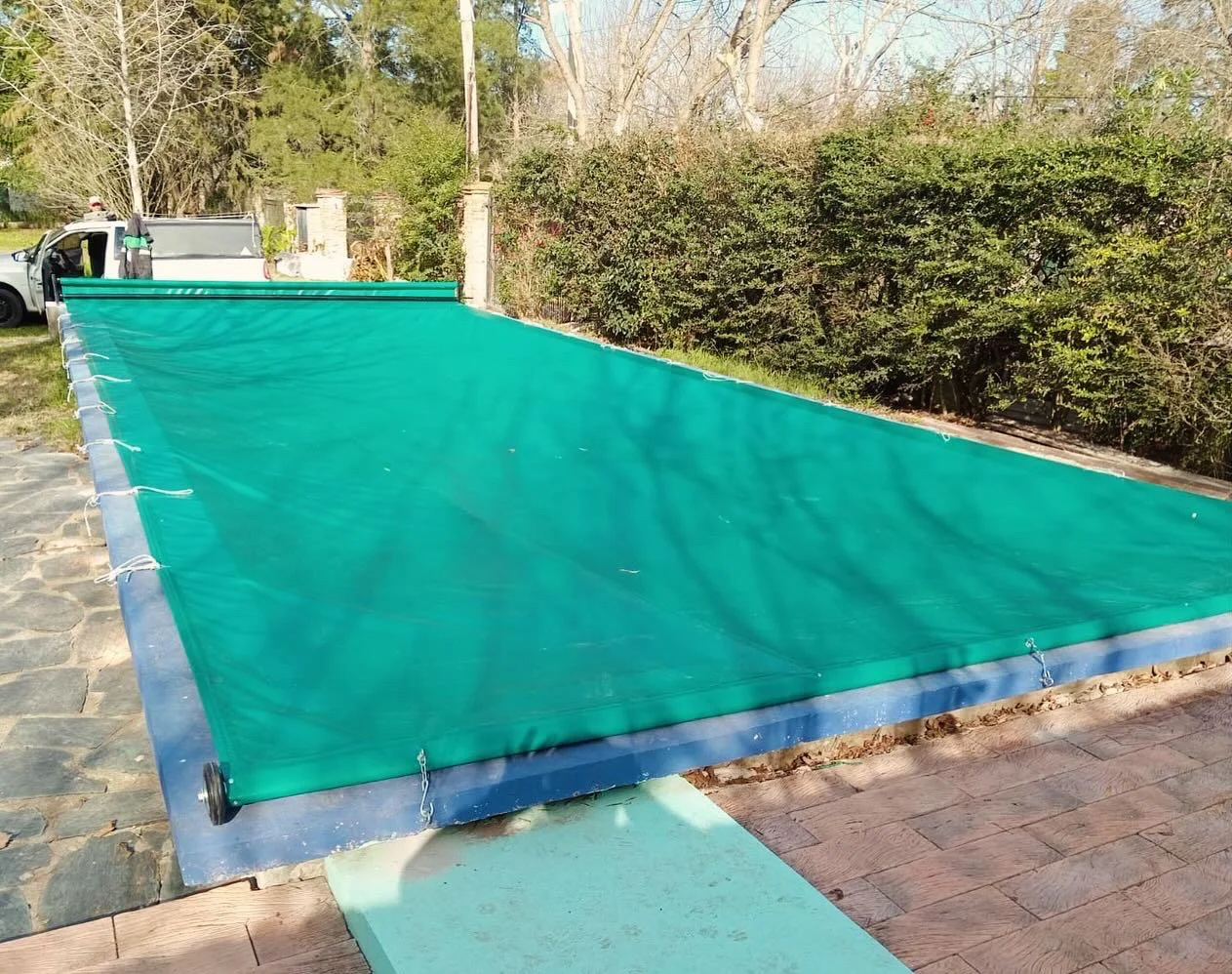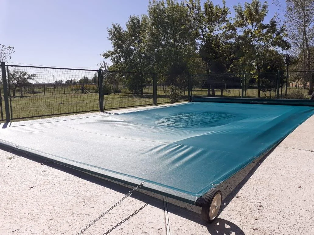 Los cubrepiletas enrollables que fabricamos cuentan con un malacate de acero y dos soportes de alta resistencia. Se enrollan y despliegan gracias a un doble rollo y un hierro tensor con ruedas de goma, el cual se sujeta de 3 cadenas y varias sogas laterales.